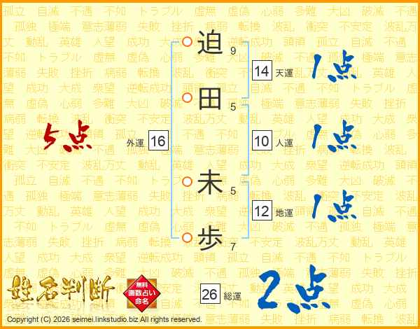 迫(9画)田(5画) 未(5画)歩(7画)