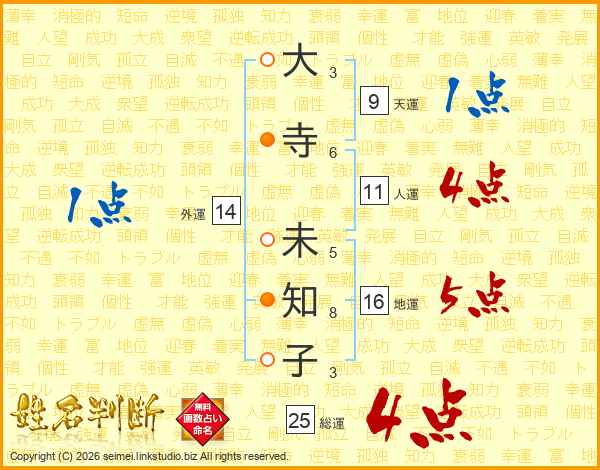 大寺未知子さんの総運は25画の4点!