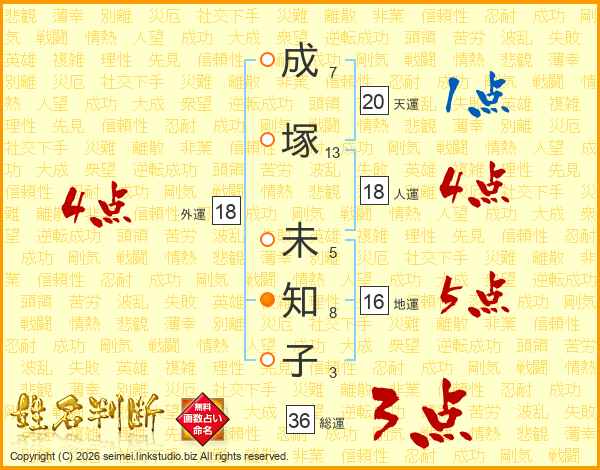 成塚未知子さんの外運は18画の4点!