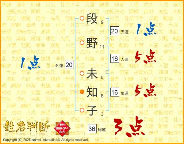 段野未知子さんの人運は16画の5点!