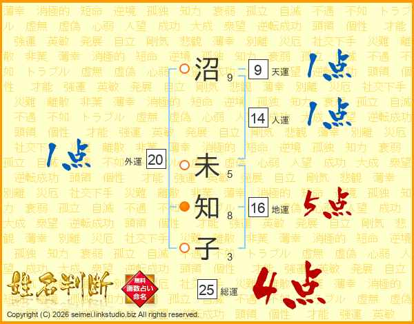 沼未知子さんの総運は25画の4点!