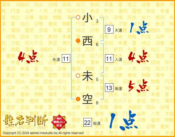 小西未空さんの人運は11画の4点!
