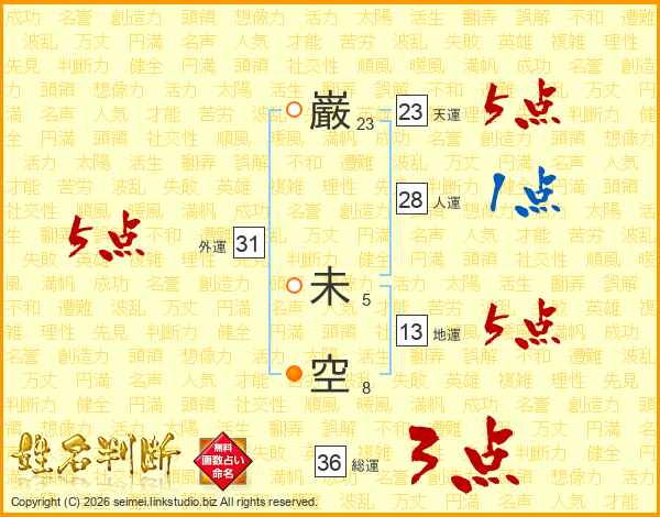 巌未空さんの外運は31画の5点!