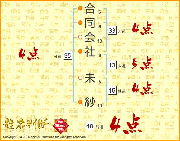 合同会社未紗さんの天運は33画の4点!