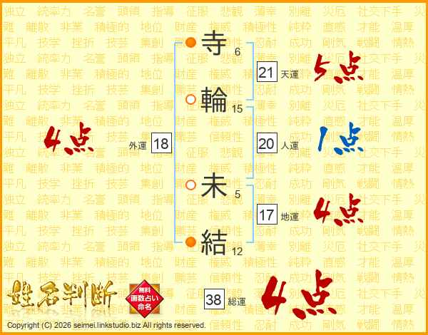 寺輪未結さんの総運は38画の4点!