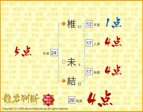 椎未結さんの外運は24画の5点!