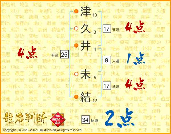 津久井未結さんの天運は17画の4点!