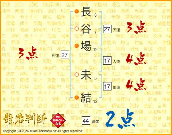 長谷場未結さんの総運は44画の2点!