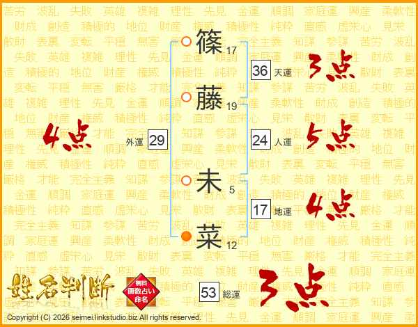 篠(17画)藤(19画) 未(5画)菜(12画)