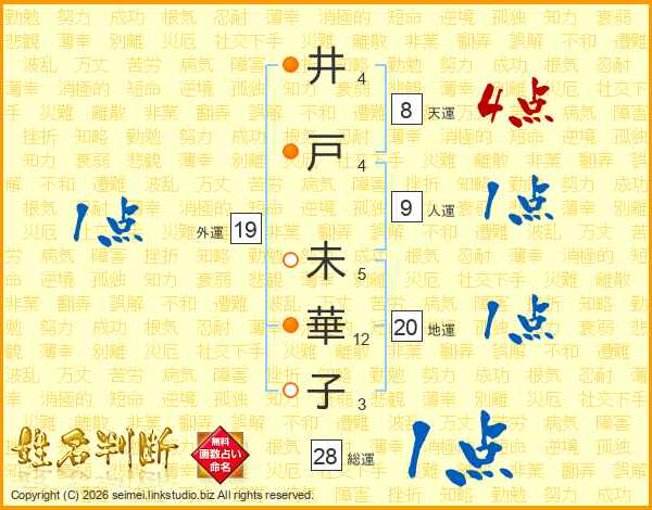 井(4画)戸(4画) 未(5画)華(12画)子(3画)