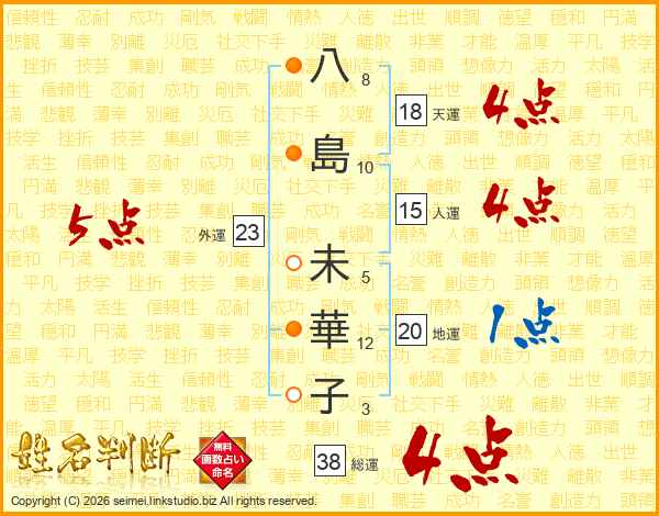 八(8画)島(10画) 未(5画)華(12画)子(3画)