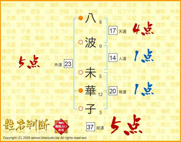 八(8画)波(9画) 未(5画)華(12画)子(3画)