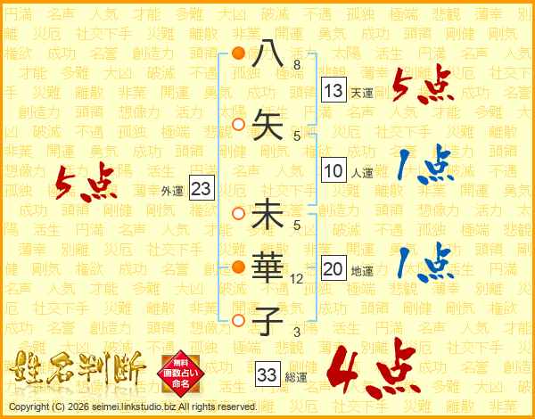 八矢未華子さんの総運は33画の4点!