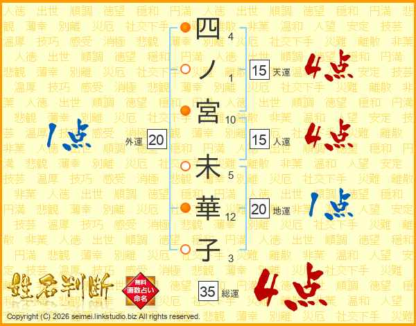 四ノ宮未華子さんの総運は35画の4点!