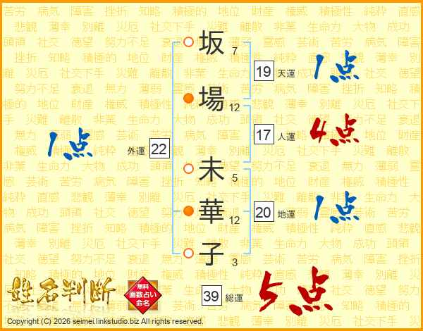 坂(7画)場(12画) 未(5画)華(12画)子(3画)