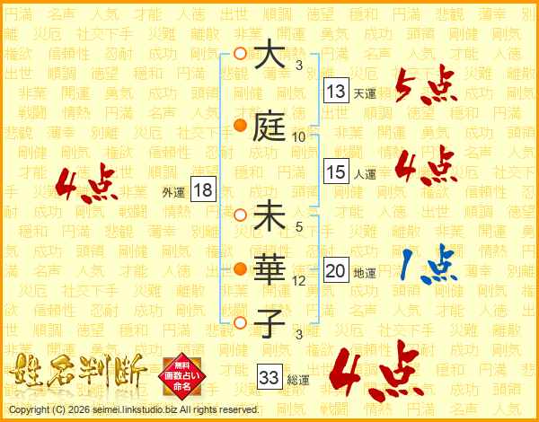 大庭未華子さんの総運は33画の4点!