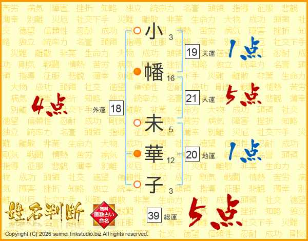 小(3画)幡(16画) 未(5画)華(12画)子(3画)