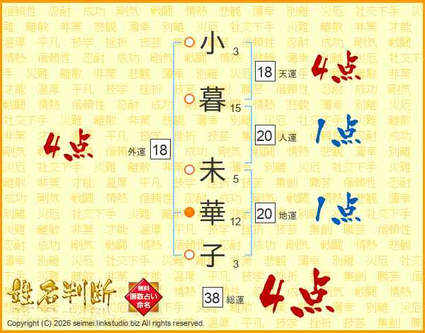 小暮未華子さんの総運は38画の4点!