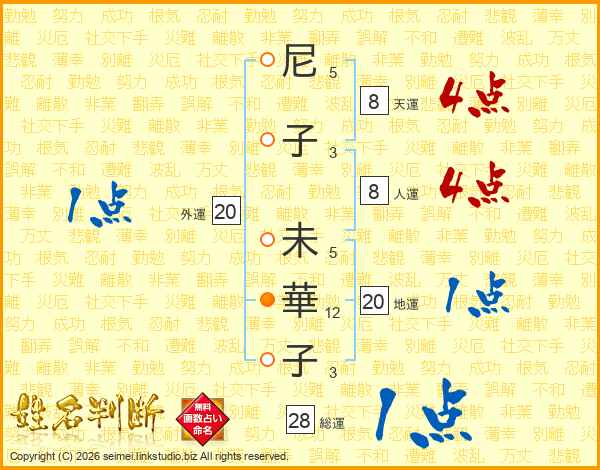 尼(5画)子(3画) 未(5画)華(12画)子(3画)