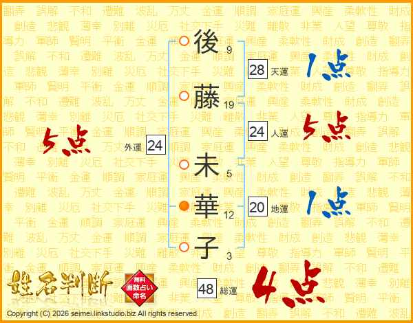 後(9画)藤(19画) 未(5画)華(12画)子(3画)