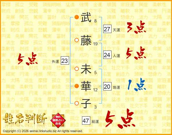 武(8画)藤(19画) 未(5画)華(12画)子(3画)