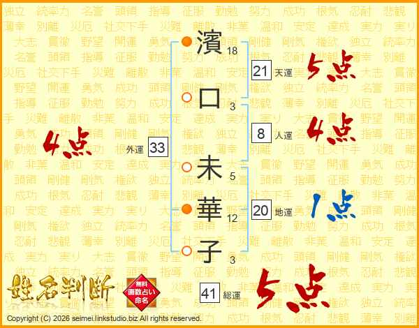 濱口未華子さんの外運は33画の4点!