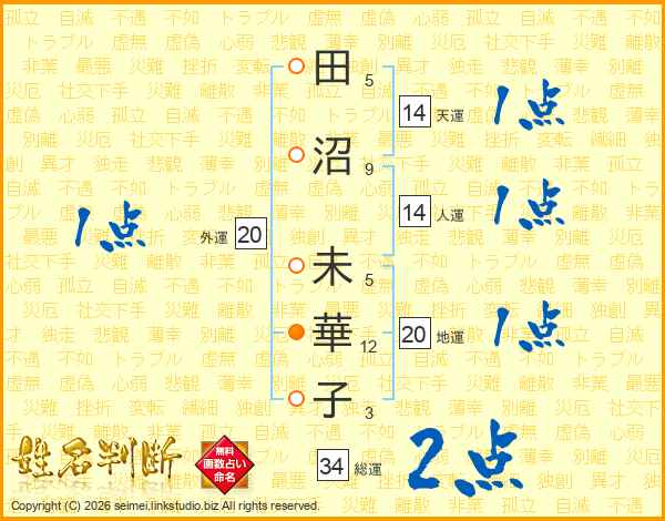 田沼未華子さんの天運は14画の1点!