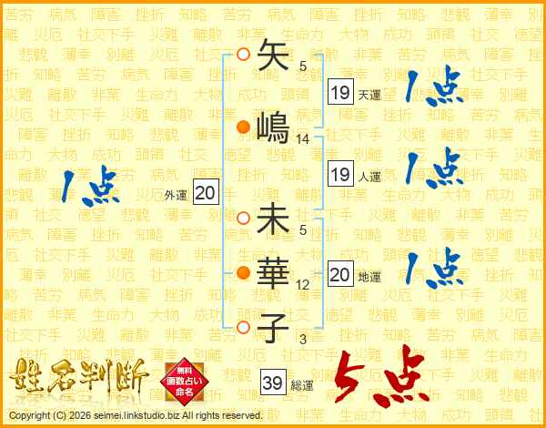 矢嶋未華子さんの総運は39画の5点!