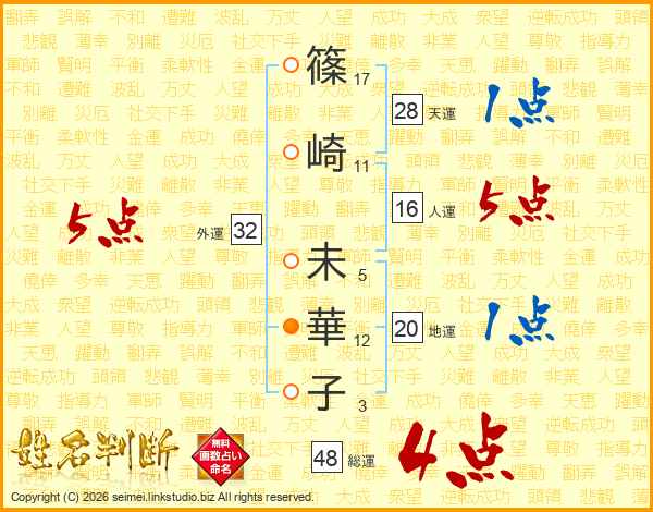 篠(17画)崎(11画) 未(5画)華(12画)子(3画)