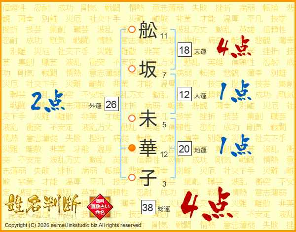 舩(11画)坂(7画) 未(5画)華(12画)子(3画)