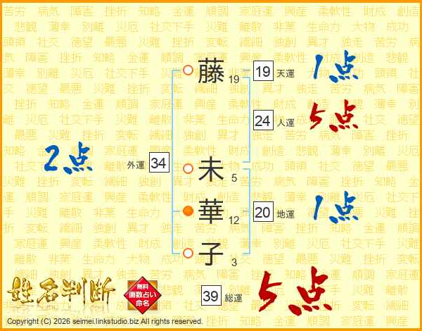 藤未華子さんの総運は39画の5点!