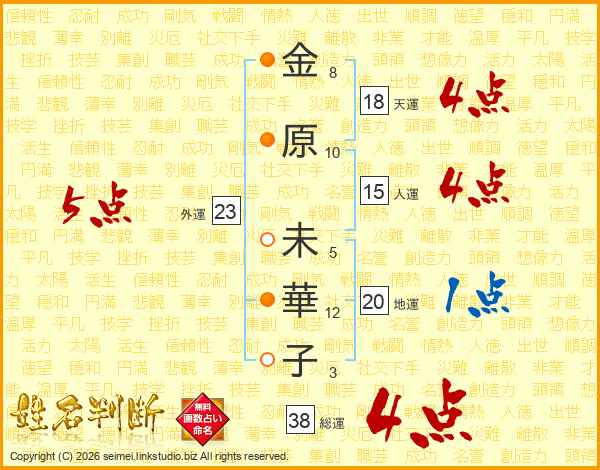 金(8画)原(10画) 未(5画)華(12画)子(3画)