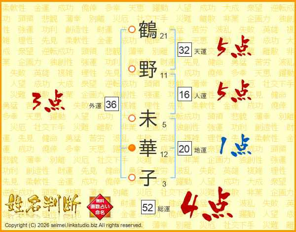 鶴野未華子さんの天運は32画の5点!