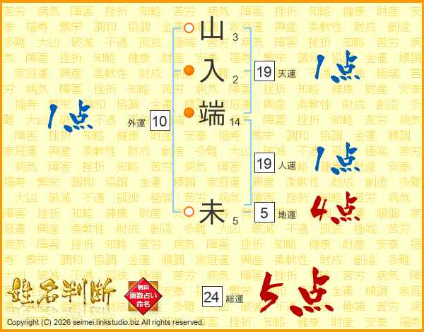 山入端未さんの総運は24画の5点!