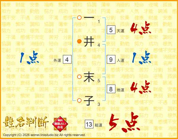一井末子さんの総運は13画の5点!