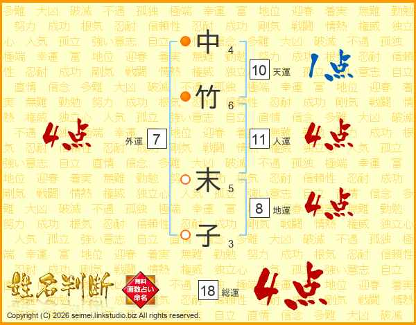 中竹末子さんの総運は18画の4点!