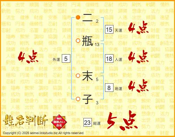 二瓶末子さんの総運は23画の5点!