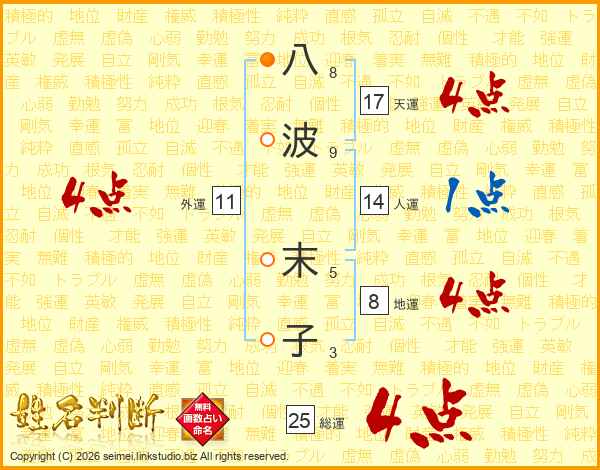 八波末子さんの地運は8画の4点!