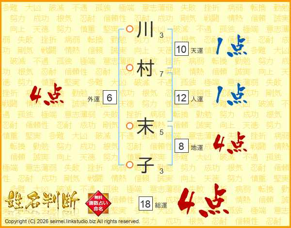 川村末子さんの総運は18画の4点!