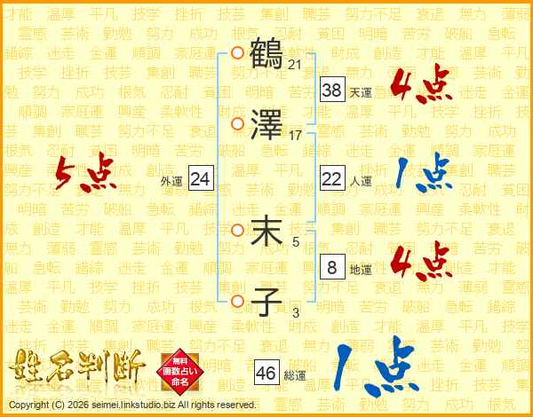 鶴澤末子さんの総運は46画の1点!