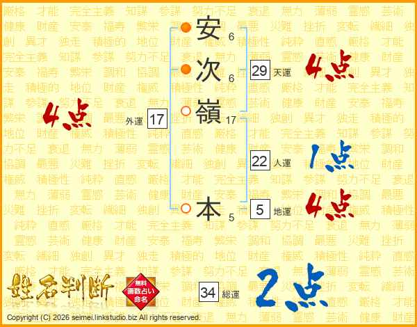 安次嶺本さんの人運は22画の1点!