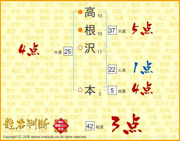 高根沢本さんの人運は22画の1点!