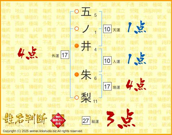 五(5画)ノ(1画)井(4画) 朱(6画)梨(11画)