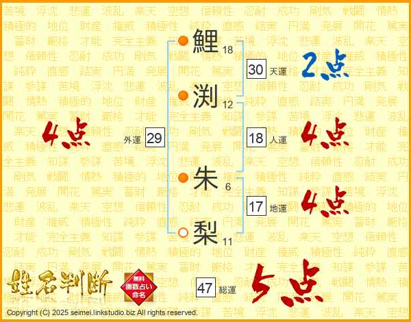鯉(18画)渕(12画) 朱(6画)梨(11画)