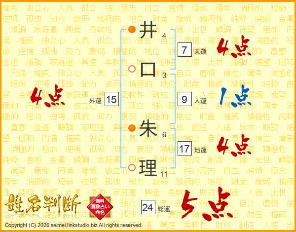 井口朱理さんの総運は24画の5点!