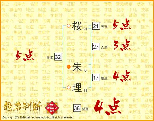 桜朱理さんの総運は38画の4点!