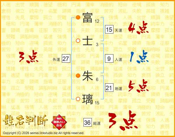 富士朱璃さんの総運は36画の3点!
