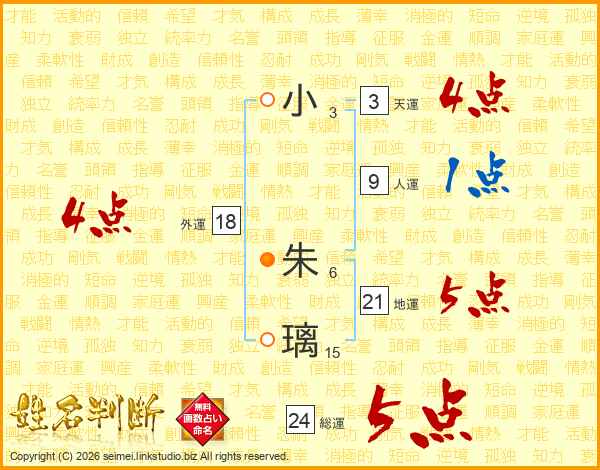 小朱璃さんの総運は24画の5点!
