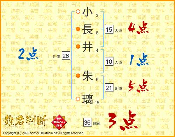小長井朱璃さんの天運は15画の4点!