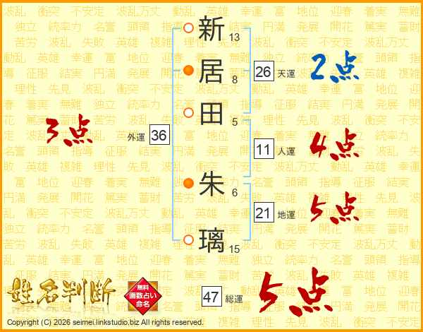 新居田朱璃さんの総運は47画の5点!
